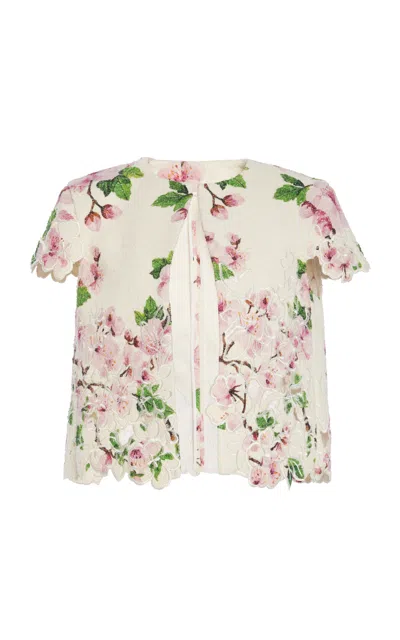 Cherry Blossom Tweed Embroidered Jacket In Green