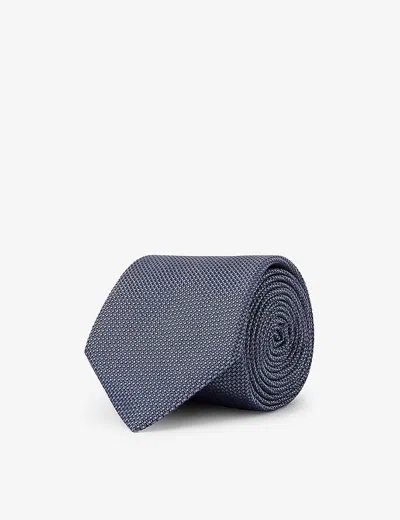 Mens Airforce Blue Ceremony Textured Silk-blend Tie