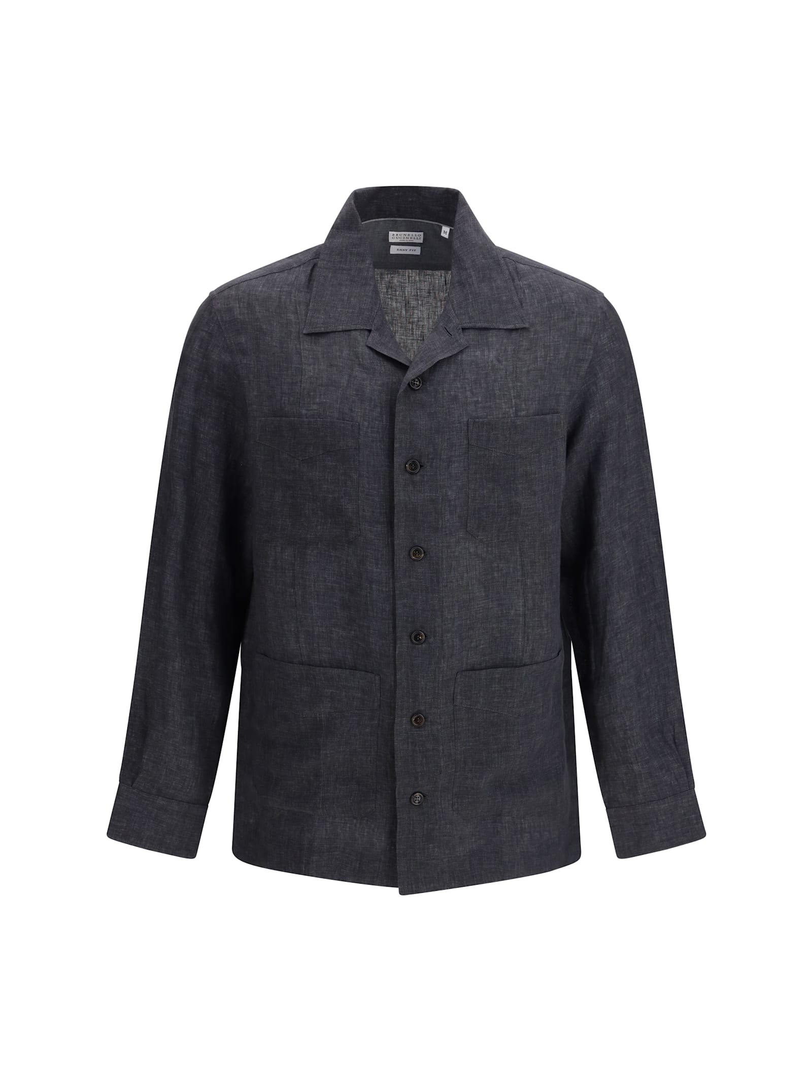 Linen Shirt Easy Fit Four Pockets In Blue