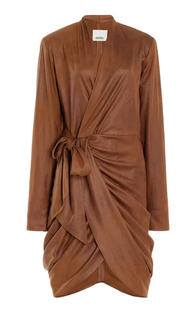 Aleora Draped Faux Suede Wrap Dress In Brown
