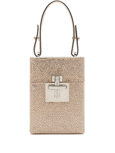 Alibi Crystal Pave Satin Top Handle Bag In Champagne