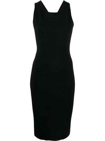 Silk Midi Dress Sweetheart Neckline Straps In Black