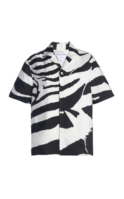 Zebra Stripe Parachute Button-up Shirt In Black White