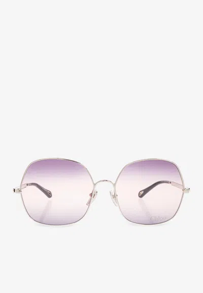 G2328 Aviator-frame Metal Sunglasses In Silver