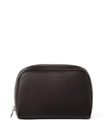 Leather Wash Bag In Black