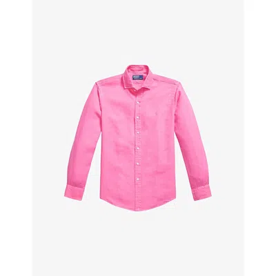 Mens Baja Pink Logo-embroidered Custom-fit Linen Shirt