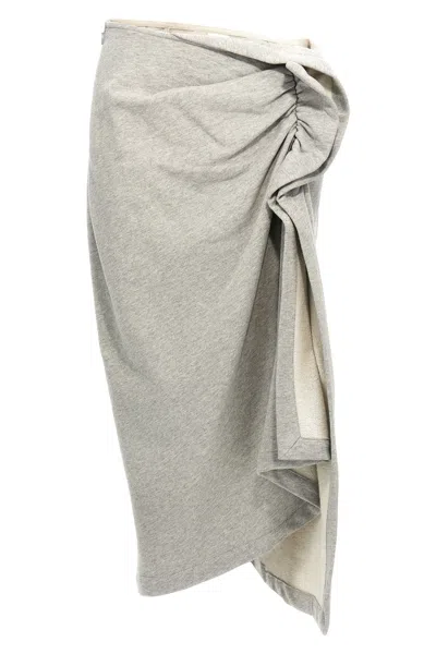 Hanam Jersey Skirt Midi Asymmetric Ruched In Gray