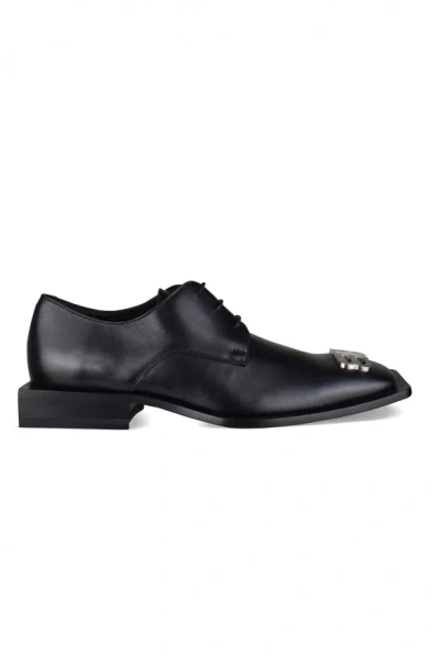 Black Truck Leather Derby Shoes In Animal Print