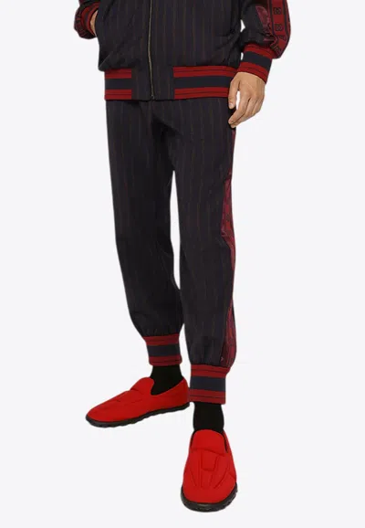 Pinstripe Track Pants With Logo Bands In Blue