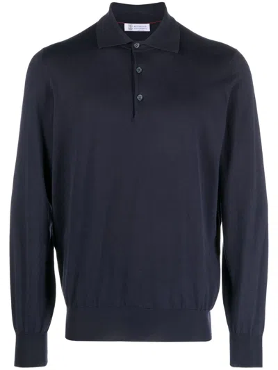Long-sleeved Polo Sweater In Blue