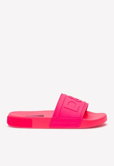 D&g Logo Fluorescent Rubber Beach Slides In Pink