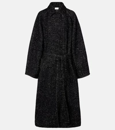 Macaria Belted Wool Oversized Coat In Black