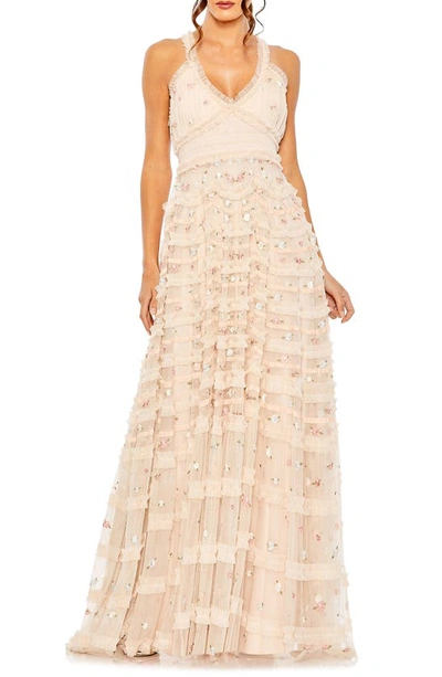 Floral Embellished Halter Strap A Line Gown In Neutral