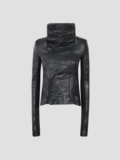 Naska Biker Black Jacket With Oversized Funnel Neck And Double-breasted Closure In Leather Woman