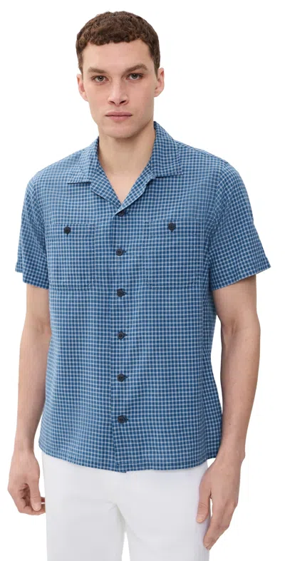 Billy Short Sleeve Plaid Collared Shirt Indigo Cream In Blue
