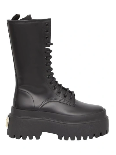 Valentino Vlogo Signature 45 Leather Platform Knee-high Boot In Black