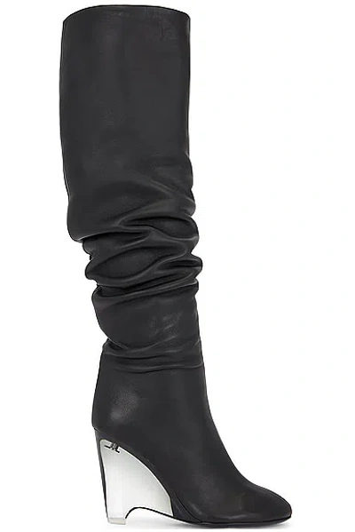 Over The Knee Mesh Boots With Plexiglass Wedge Heel 11cm In Noir