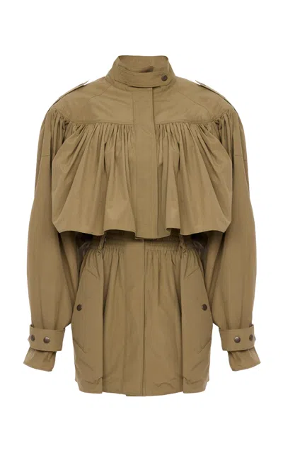 Ruched Cotton Utility Jacket In Brown