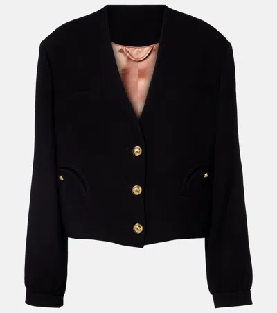 Long Wool-gabardine Blazer In Blue