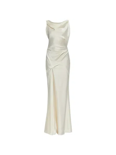 POSY垂褶绉纱缎布长礼服