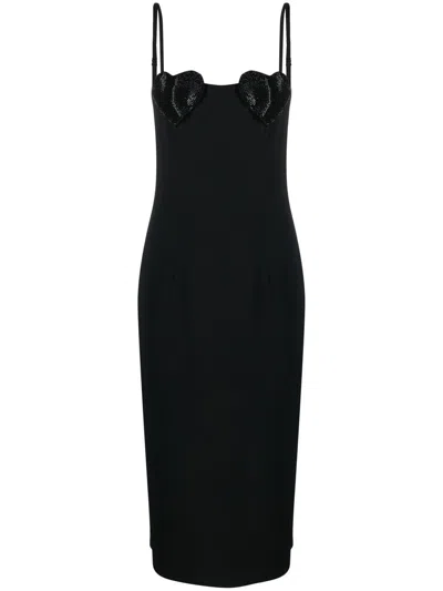 Elegant Midi Dress With Rhinestone Floral Accents In Black