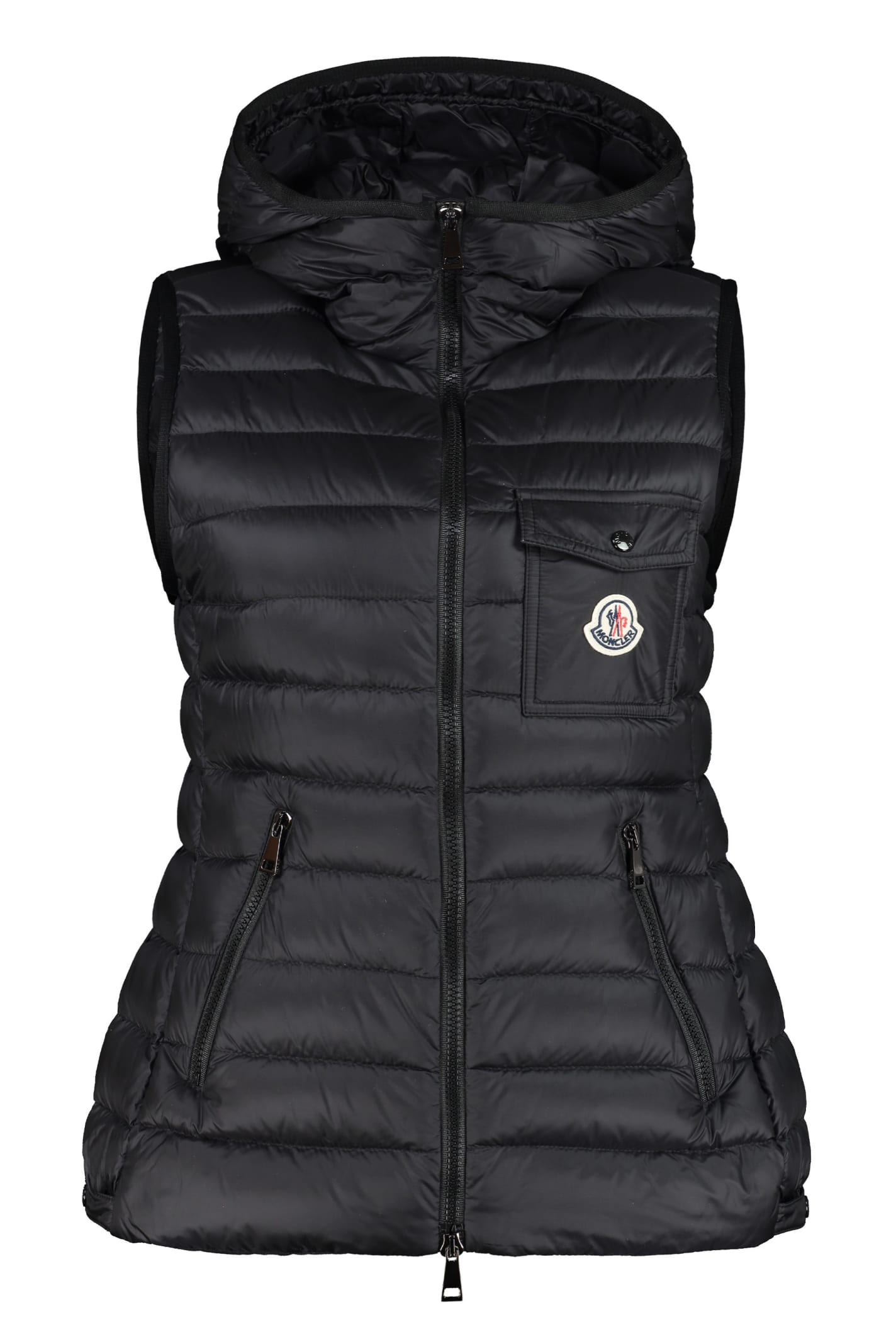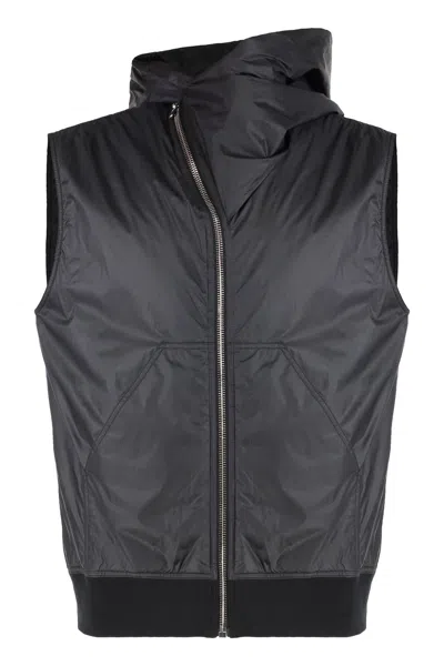 Hooded Padded Bodywarmer Two Side Pockets In Black