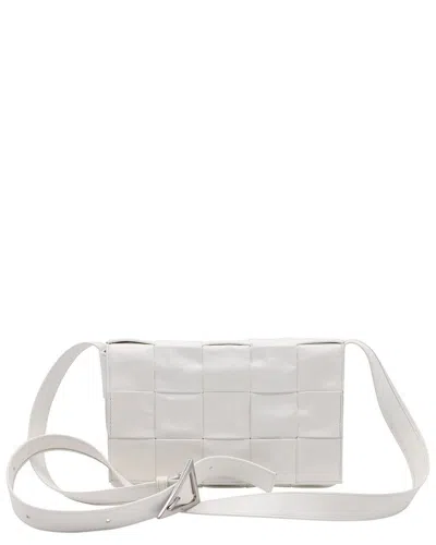 White Intrecciato Sheep Leather Brick Cassette Shoulder Bag Maxi Small (authentic Pr