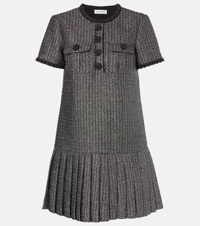 Self Portrait Boucle Tweed Pleated Mini Skirt In Blue