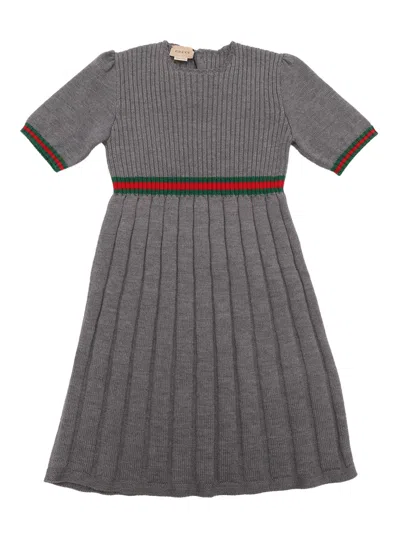 Kids' Grey Wool Dress With Web Ribbon