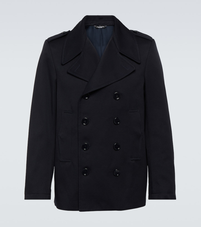 Double-breasted Peacoat Featuring Notched Lapels In Blue