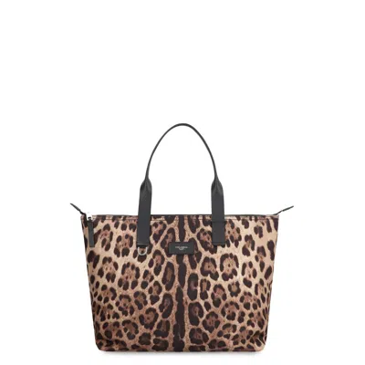 Nylon Shopper Bag In Animal Print