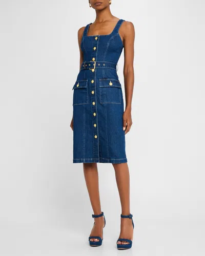 Denim Jacket With Buttoned Cuffs And Multiple Pockets In Navy