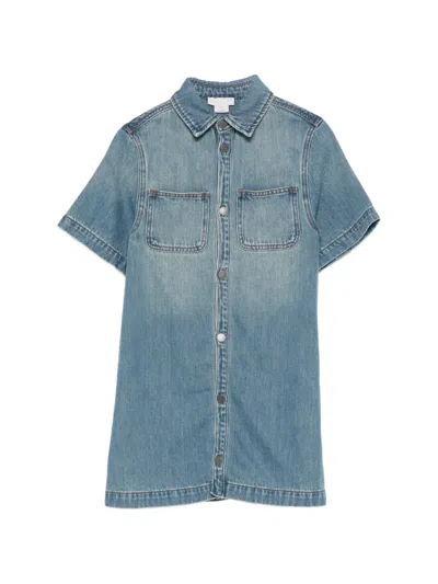 Blue Half-button Denim Shirt In 565 Ice Blue