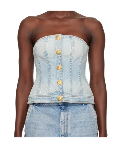 Button Denim Top In 6fc Bleu Jean Clair