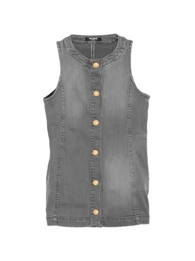 Kids' Embossed-button Denim Dress In Gray