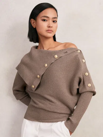 Womens Lexi Shawl-collar Button-embellished Stretch-knit Jumper Taupe In Brown