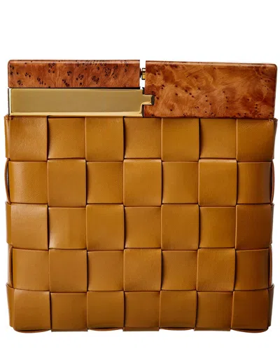 Bv Snap Intrecciato Leather Clutch In Brown