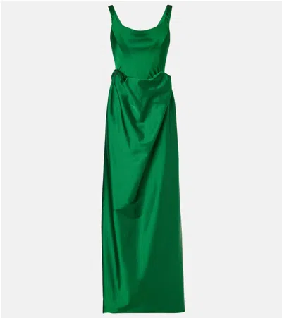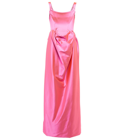 CAMILLE垂褶绉纱缎布紧身胸衣式长礼服