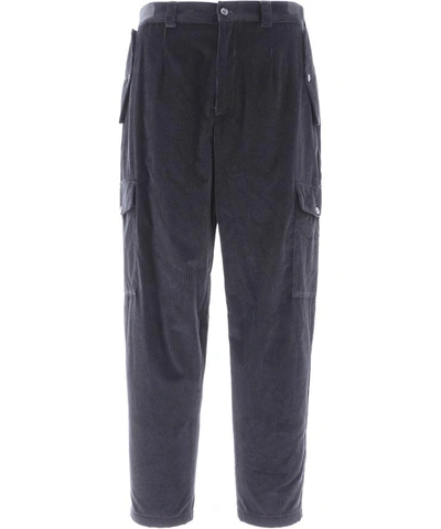 Cotton Corduroy Cargo Trousers In Black