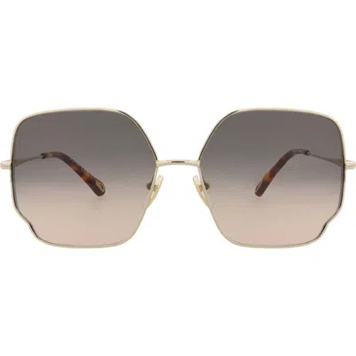 Chloe Brown Gradient Rectangular Ladies Sunglasses Ch0237sk 004 54