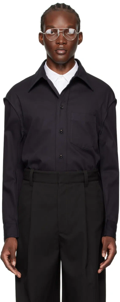 Oversized Button-up Wool Shirt In Black