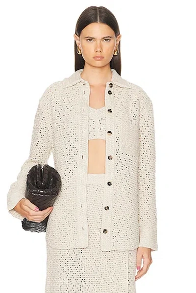 Thames Pointelle Knit Short Sleeve Button-up Shirt In White
