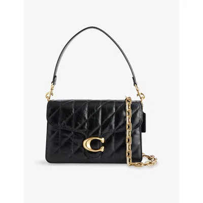 Tabby 20 Black Quilted Shoulder Bag With Chain-link Leather Shoulder Straps And Logo Plaque On The F