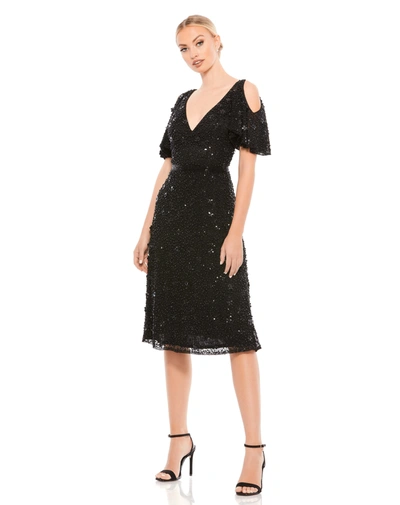 Embellished Cold Shoulder Cocktail Dress In Black