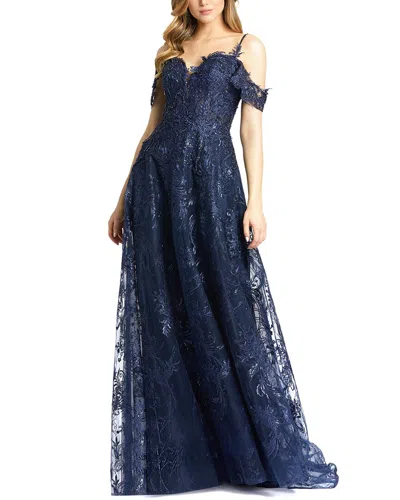 Embellished Cold Shoulder Sweetheart A Line Gown In Blue