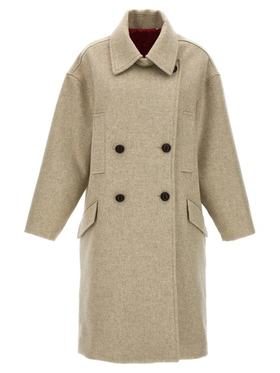 Womens Neutral Rene Double-breasted Wool-blend Coat