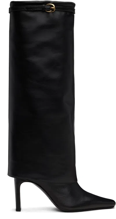 Black Wally Foldover High Heel Tall Boots In Blk Black