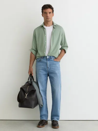 Green Davaro Stretch-modal Cutaway-collar Shirt Regular-fit