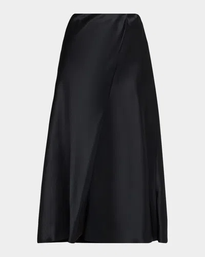 Demi Satin Midi Wrap Skirt In Black