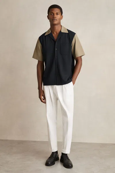 Mens Dunwich Colour-block Knitted Shirt White Navy Xs